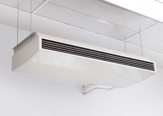天吊形の業務用エアコンは、天井埋め込み形に比べて設置場所に制限が少なく、広い空間にも適しているため、店舗やオフィス、会議室などでよく使われている。また、天井に吊り下げられるため、壁や床を取らず、空間の有効活用ができる点も魅力的!メンテナンスもしやすく、フィルターの清掃や交換も比較的簡単に行えるため、衛生的な空気環境を保ちやすいです!